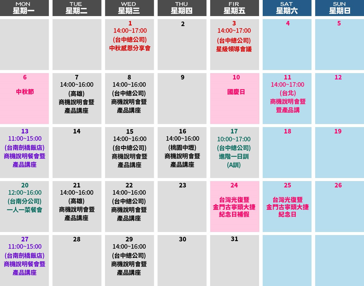 行事曆calendar